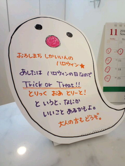 先日のブログで触れましたが、10月30日はハロウィン前日ということで、おろしまち歯科医院でもちょっとしたイベントを企画してみました!