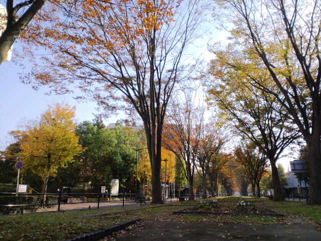 綺麗な並木道の紅葉も、そろそろ終わりですね。