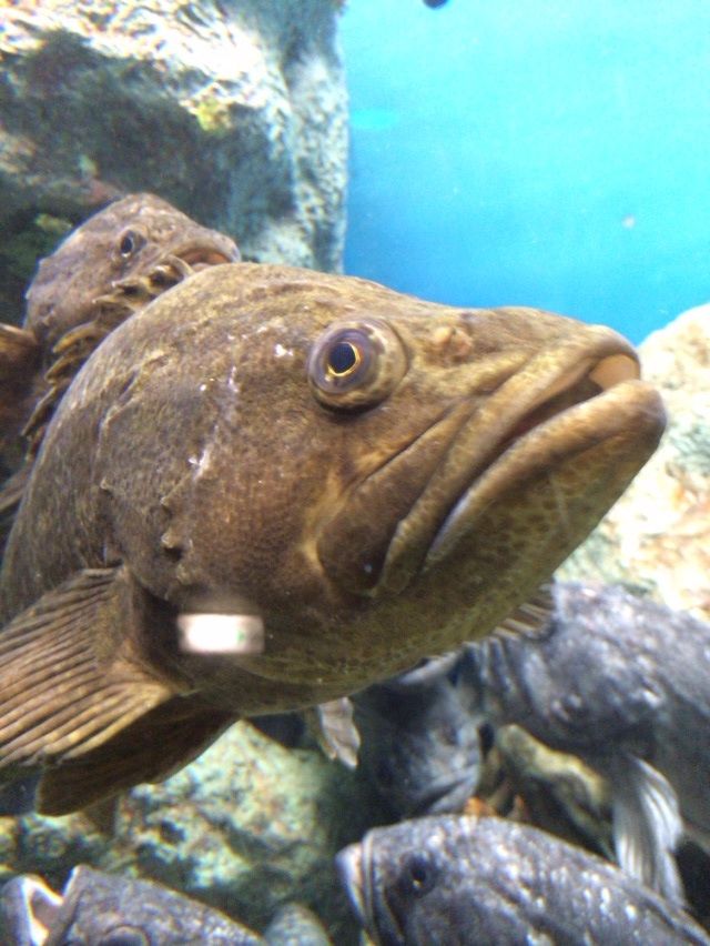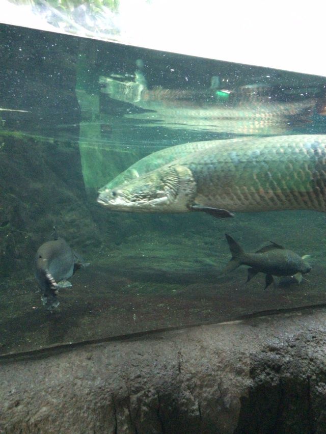 初めて見る自分より大きな魚に、いつもは怖いもの知らずなケンゴウもダッシュで水槽の間を駆け抜けてました