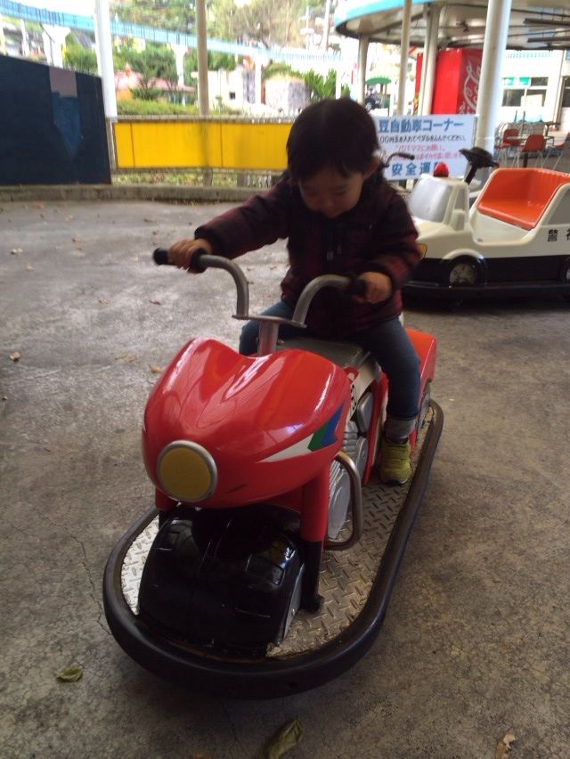 ケンゴウが乗っているこのオートバイの乗り物に自分が乗ってる写真がアルバムにあったような…