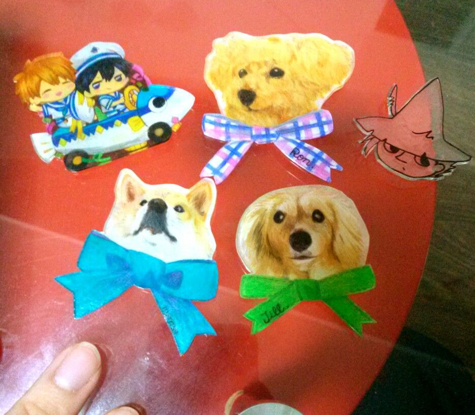 ミニチュアダックスのは私の家で飼ってる犬の画像を使って友達が作ってくれました\( ˆoˆ )/ブローチに加工してくれるみたいで楽しみです!