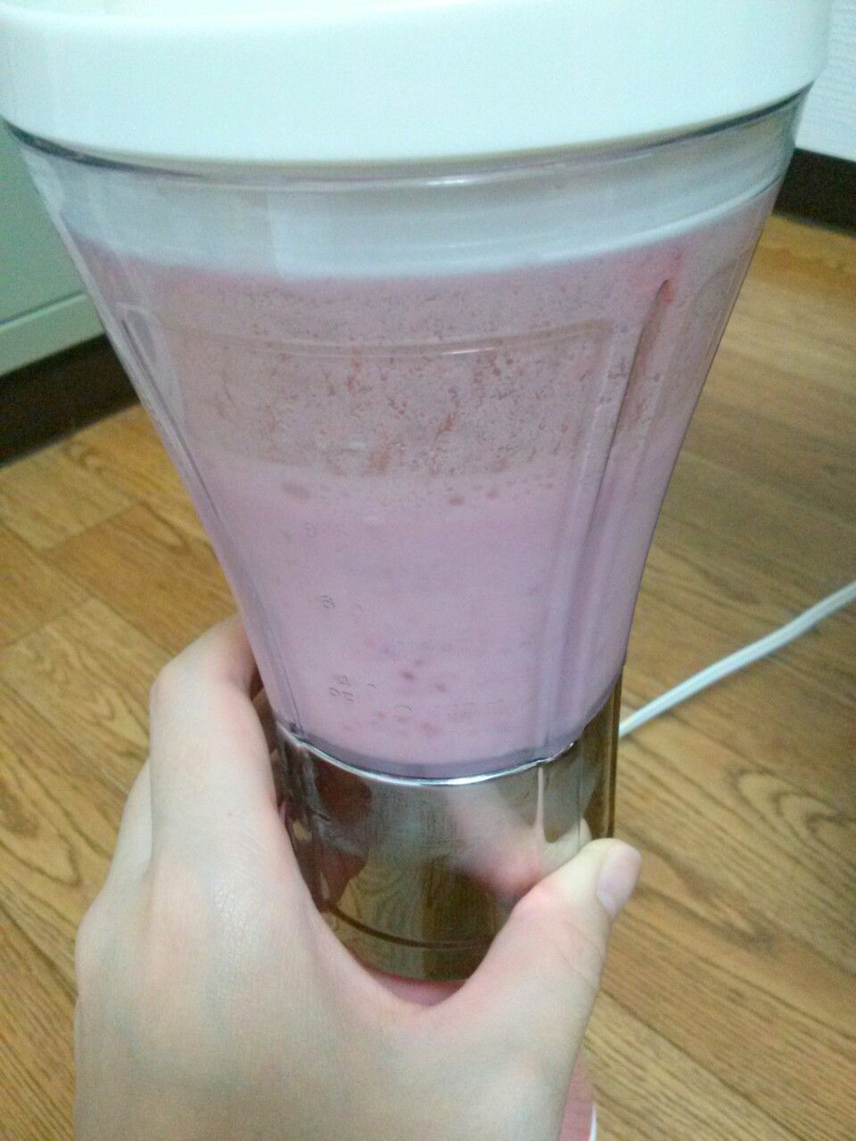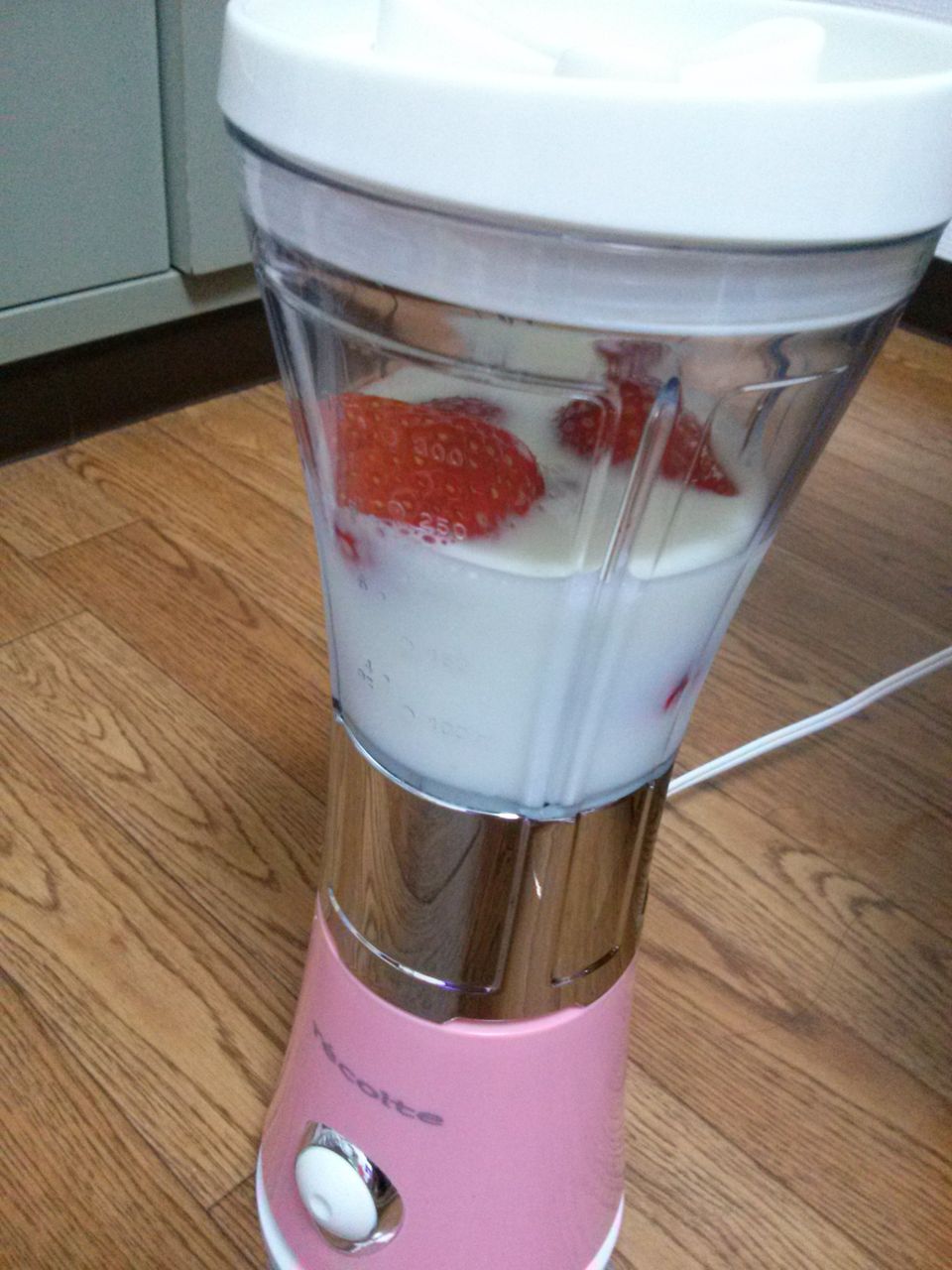 バナナとかヨーグルトとか入れても美味しそうです!材料が粉砕されてくさまが見てて楽しい!普段お肉ばっか食べてるのでいろいろ試してこれでビタミン摂取できるといいなと思います(*^▽^*)とりあえず床の上はアレなんで延長コード買ってきます♥