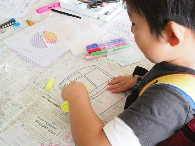 厚手のセロハンの様な丈夫な紙を切り貼りして、車輪付きの台座に載せて、中にLEDライトを入れると、提灯の様にほのかに明かりの灯る東西線車両の出来上がり😄