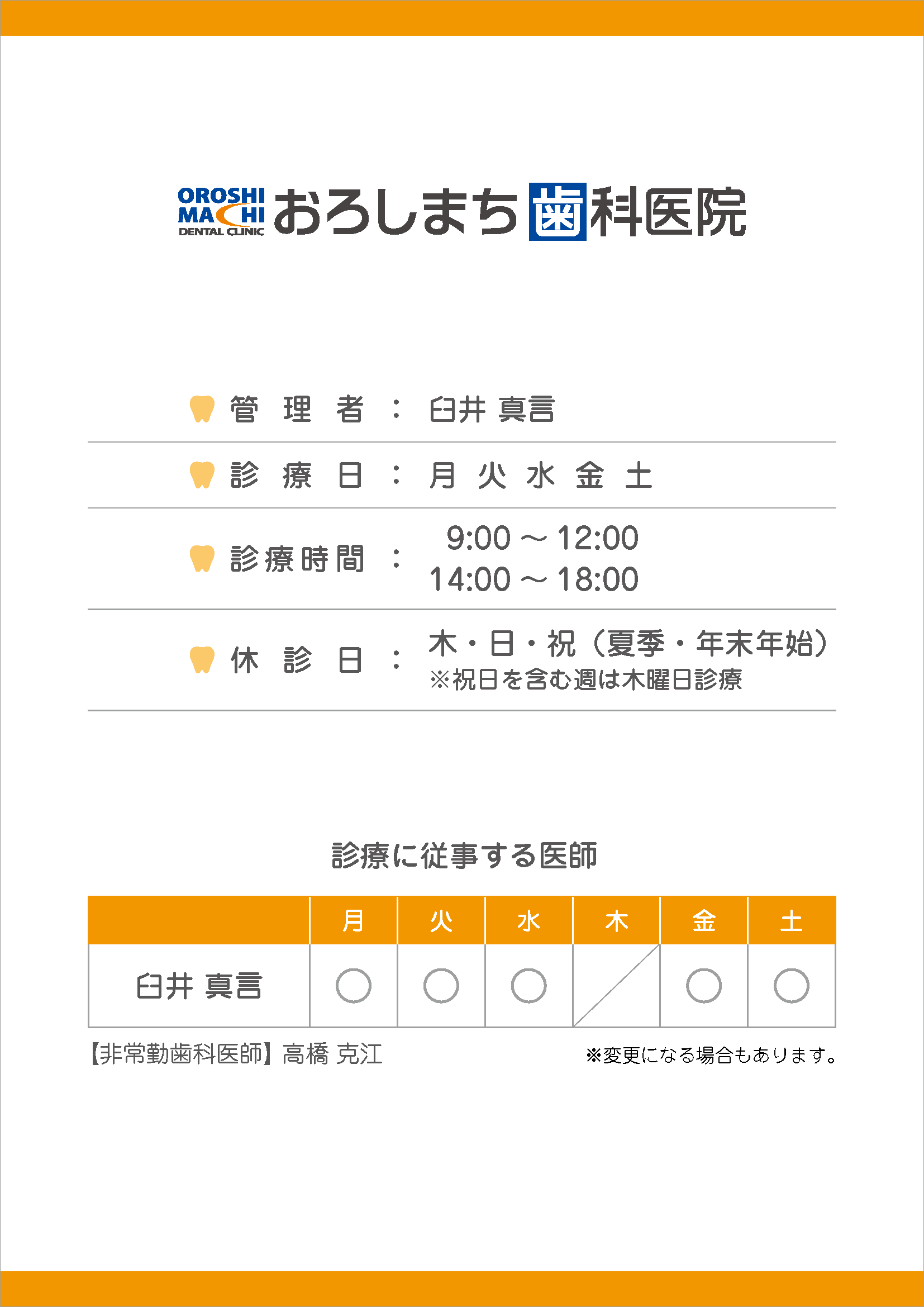 ※祝日のある週は木曜診療